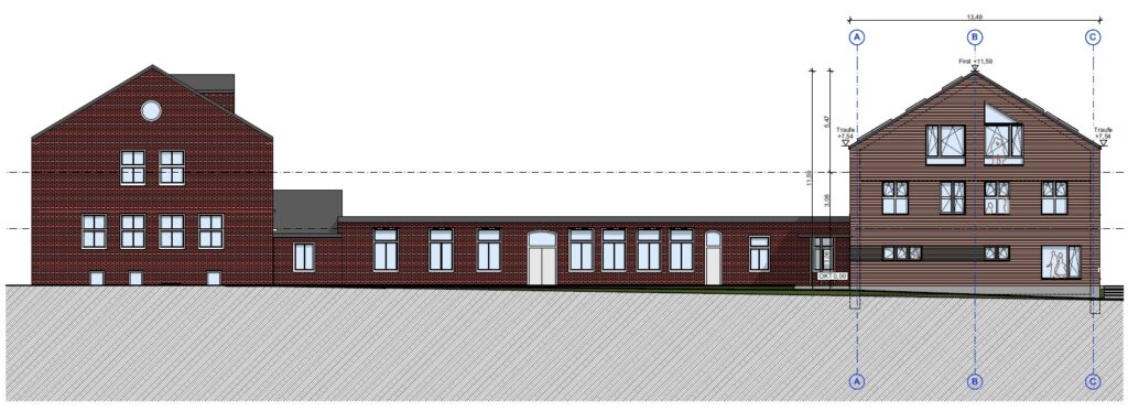 Mit dem direkt an das Hauptgebäude in der Alten Lübecker Chaussee 1 anschließenden Erweiterungsbau steht künftig eine zweite Station zur Verfügung. Sie besteht aus 500 qm Fläche und ist auf drei Ebenen verteilt. Geschaffen werden Untersuchungs- und Diensträume sowie Therapieräume für Gruppen-, Ergo-, Bewegungs-, Musik-, Kunst- und Ernährungstherapie.